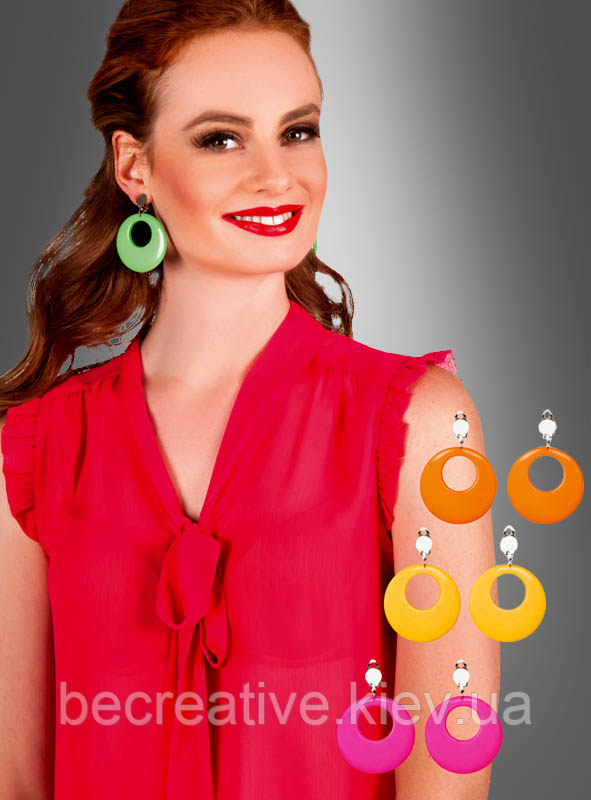 Завдяки цим кліпсам вам не потрібні отвори для вух. Кругла форма з внутрішнім ступеневим колом характерна для 1960-х і початку 1970-х років. Гарні сережки в стилі ретро ідеально підійдуть для наступної хітової вечірки. Ви можете вибрати між кольорами рожевий, жовтий, жовтогарячий і зелений.
